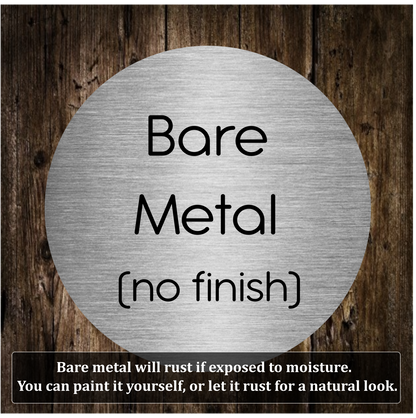 Our products are made from steel and powder coated in the color of your choice. The "Bare Metal" option is NOT powder coated and will rust with moisture. You can let it rust naturally for a rustic look, or you can choose to finish yourself. Other color options available upon request.